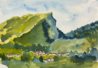Ihre Aquarellausrüstung, aufgezogene Malbretter, Feldstaffelei oder zwei klappbare Malhocker, Wasserflasche gefüllt, Mallappen, Durstlöscher und genügend Lockerheit!