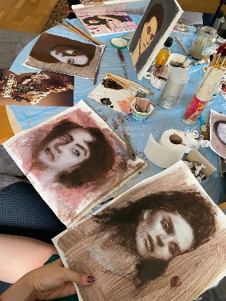 Es werden Mini-Sketches von bekannten Ölgemälden hergestellt und andere Malübungen gemacht.